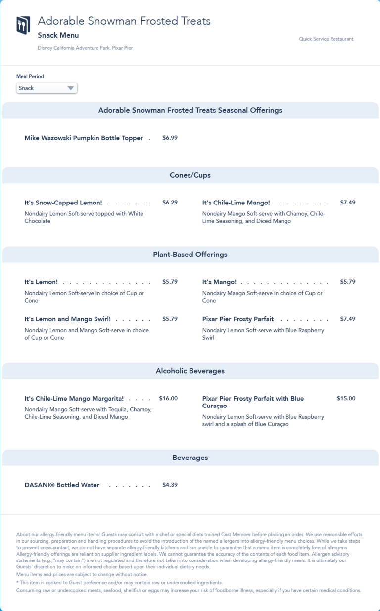 Adorable Snowman Frosted Treats Snack Menu - October 2022