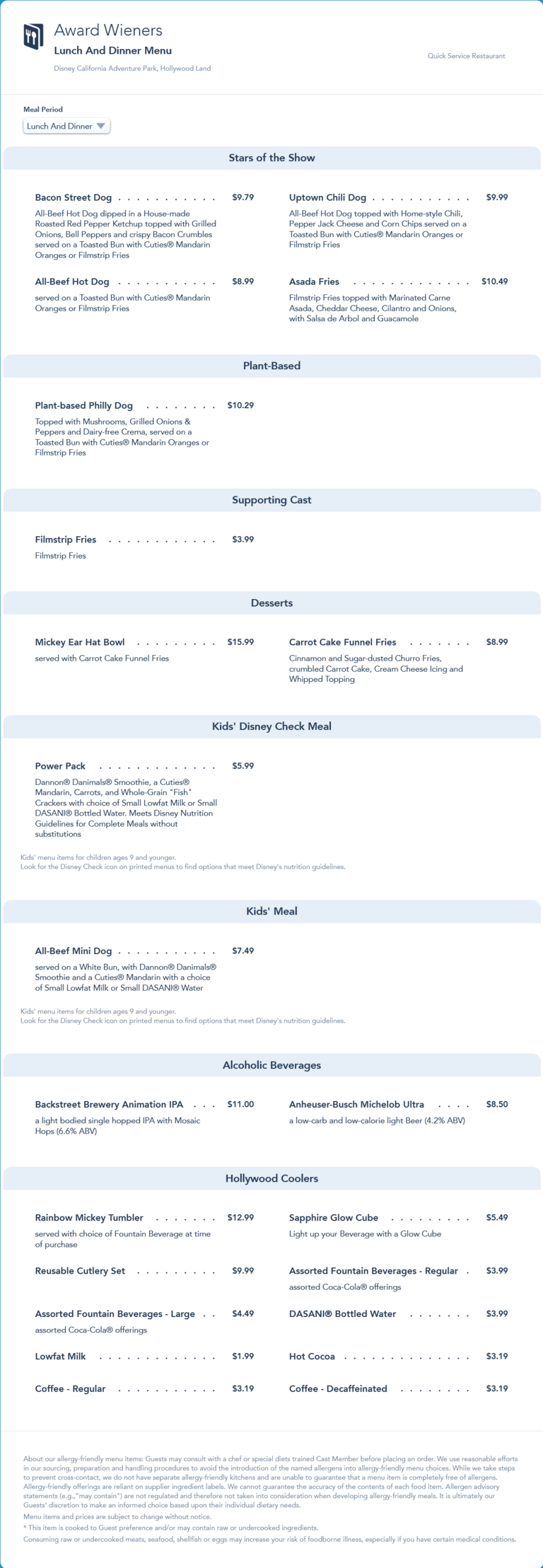 Award Wieners Lunch/Dinner Menu - July 2021 (archived)