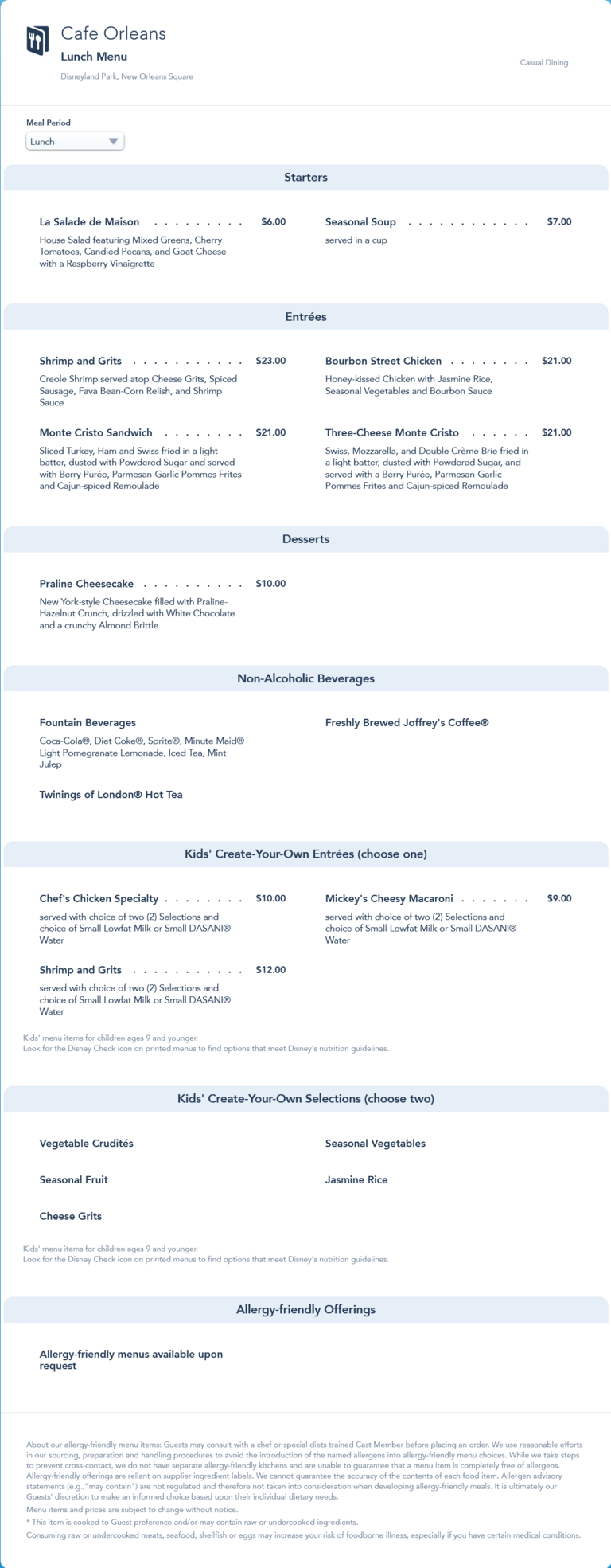 Cafe Orleans Lunch Menu - April 2021