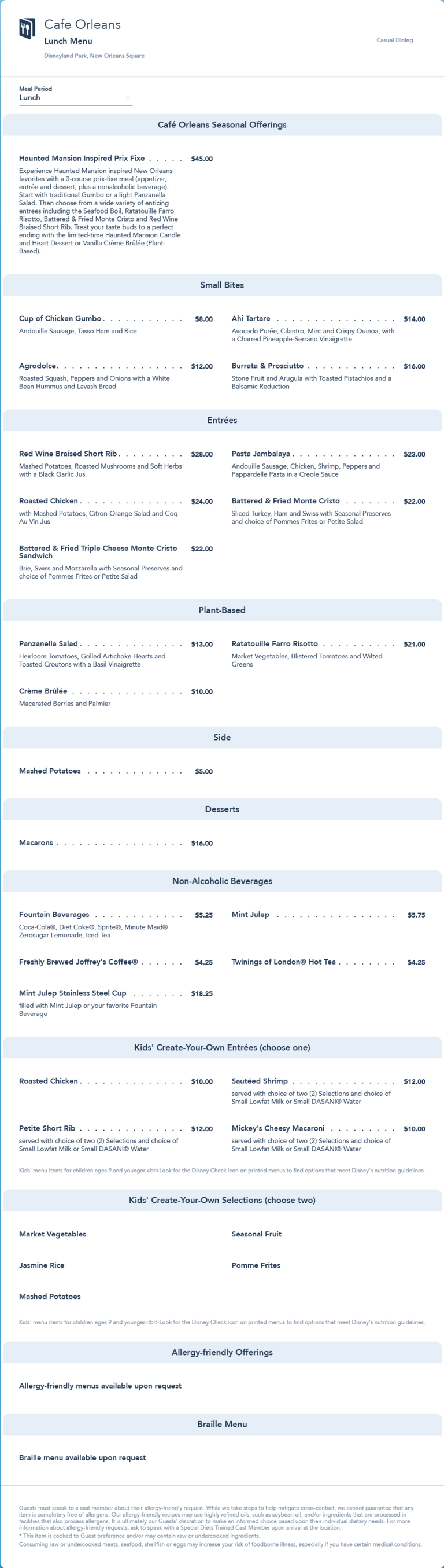 Cafe Orleans Lunch Menu - August 2023