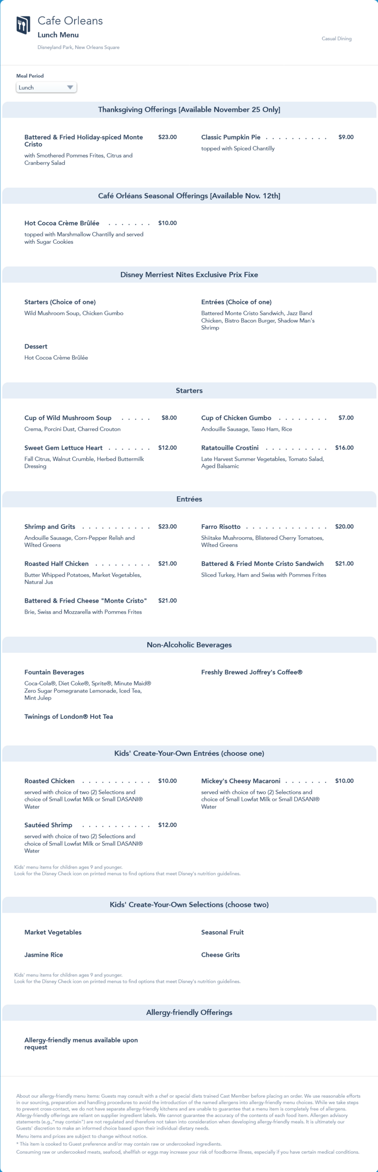 Cafe Orleans Lunch Menu - Thanksgiving 2021