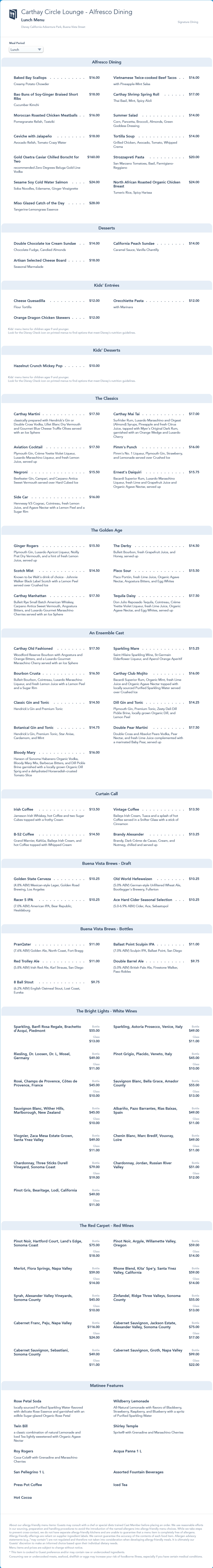 updated lunch menu in November 2021 that replaced the Ceviche with Jalapeno, Summer Salad and Tortilla Soup with Roasted Brussel Sprouts, Mexican Caesar Salad and Chicken Pozole Soup. The California Peach Sundae was also replaced by a Pumpkin Gelato Sundae.