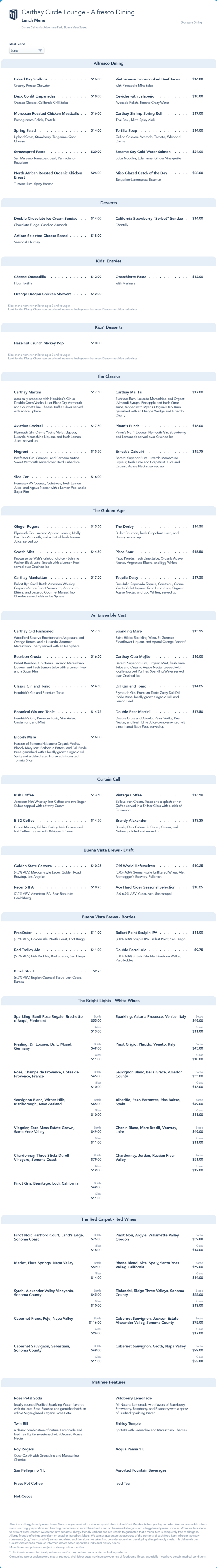 Carthay Circle Lounge Alfresco Dining Lunch Menu - July 2021 (archived)