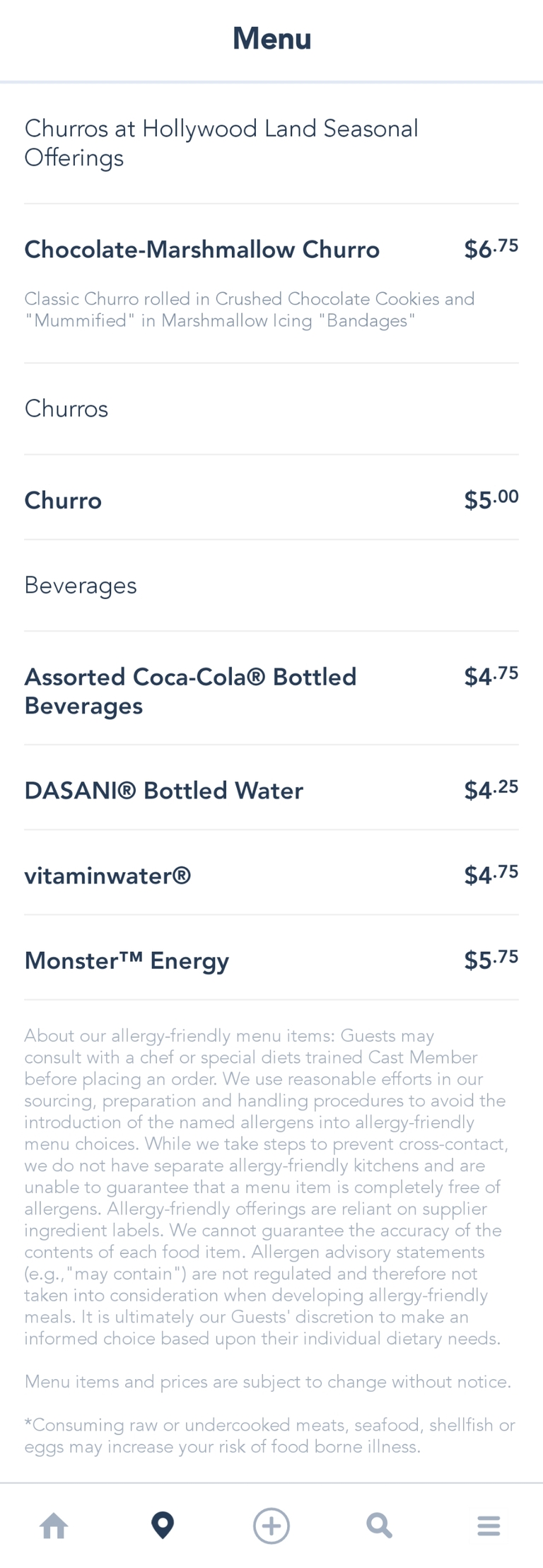Churros at Hollywood Land Snack Menu - September 2021 (archived)