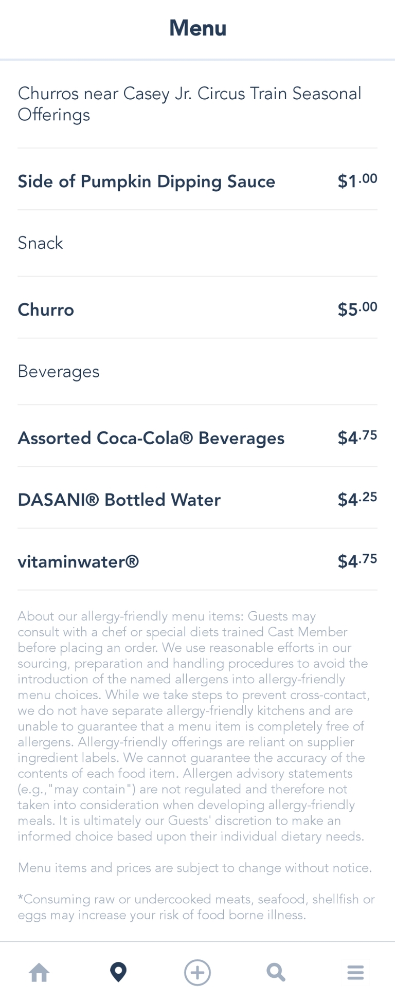 Churros near Casey Jr. Circus Train Snack Menu - September 2021 (archived)