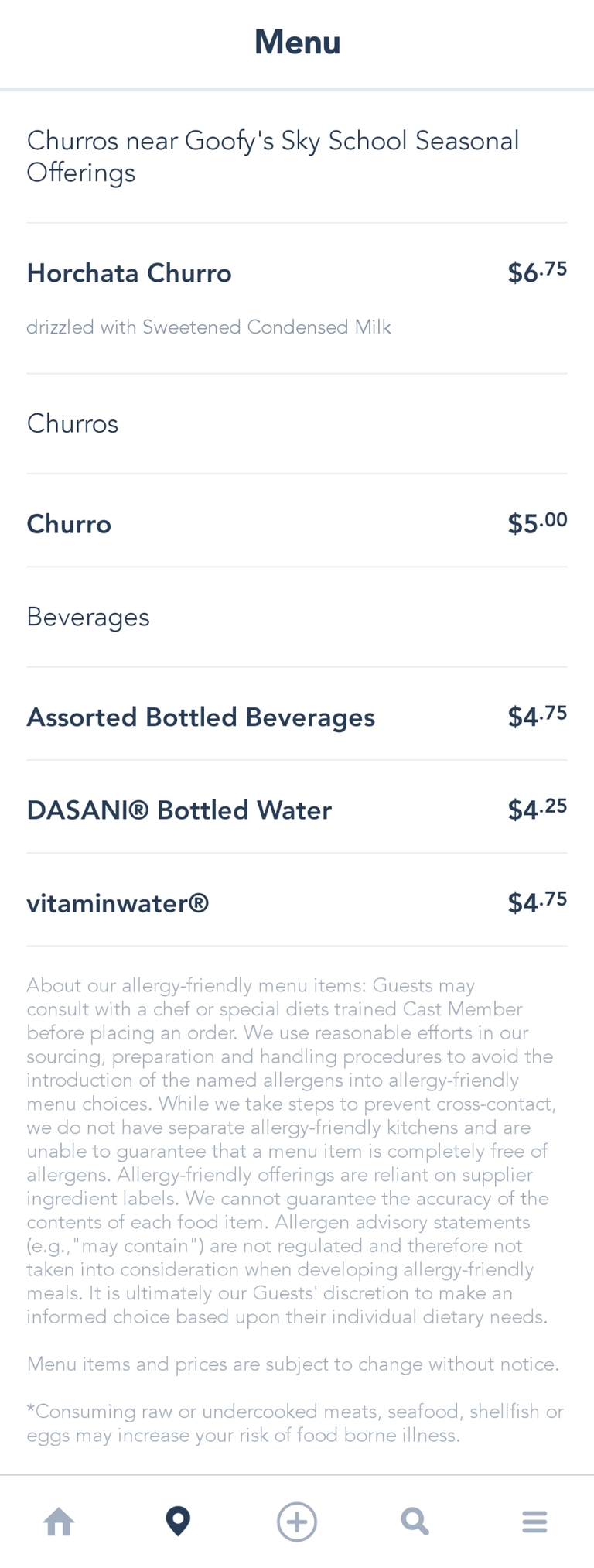 Churros near Goofy's Sky School Snack Menu - September 2021 (archived)