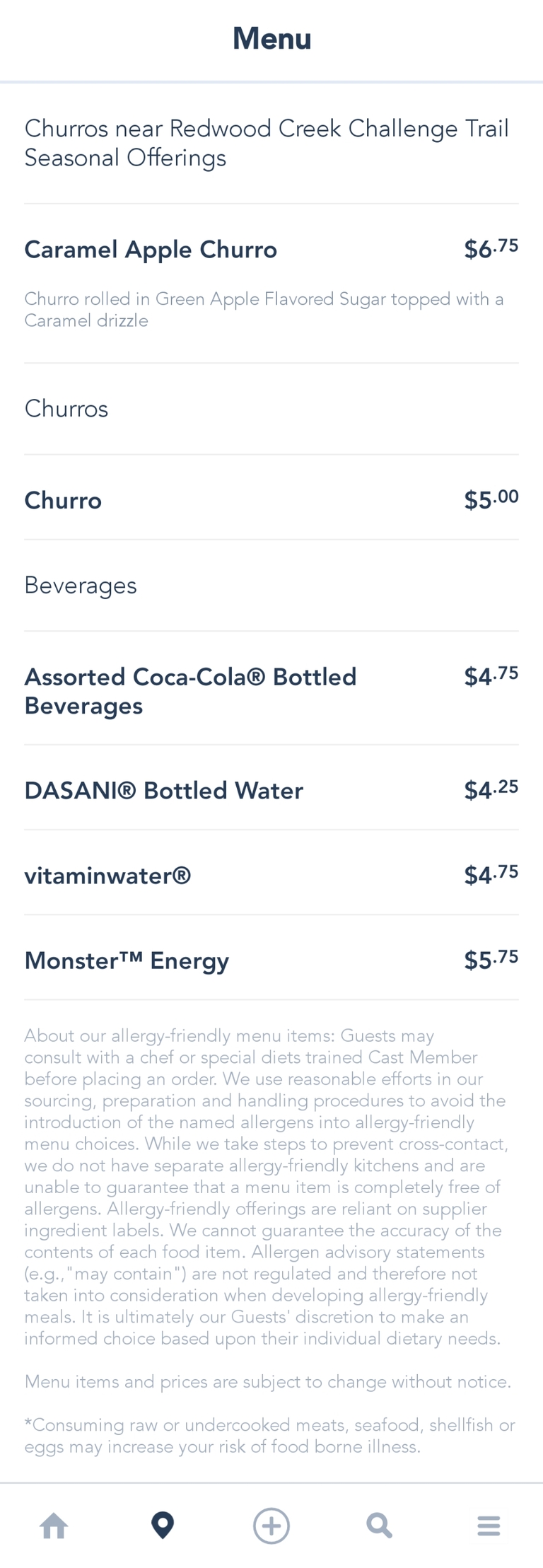 This menu was replaced by an updated menu in November 2021 that replaced the Halloween seasonal Caramel Apple Churro with the Christmas seasonal Peppermint Churro.