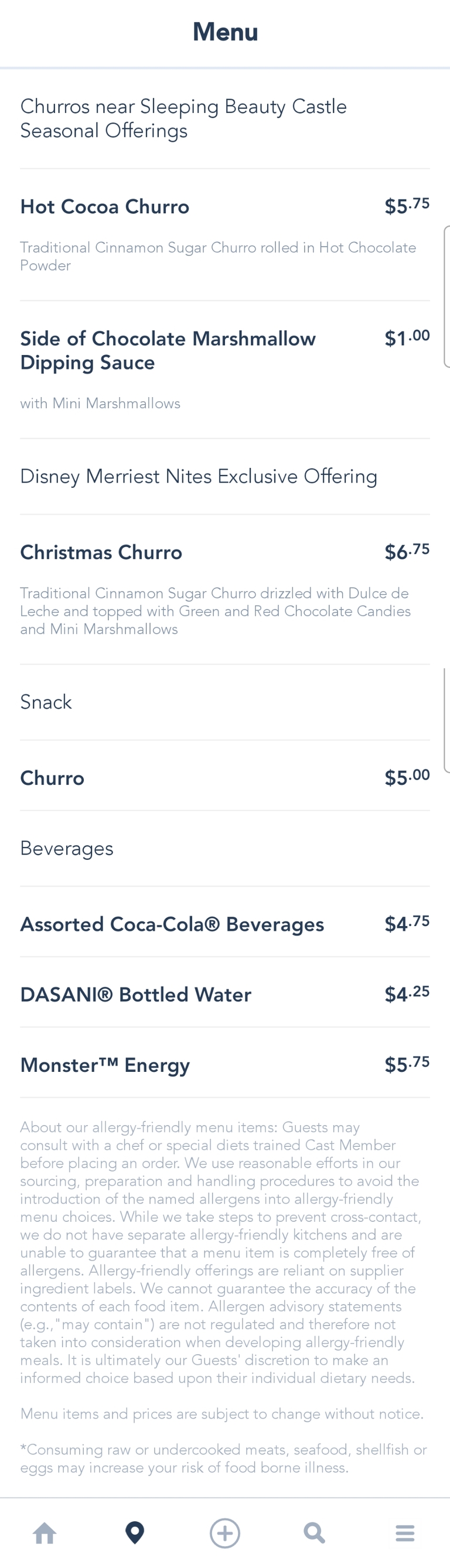 Churros near Sleeping Beauty Castle Snack Menu - November 2021
