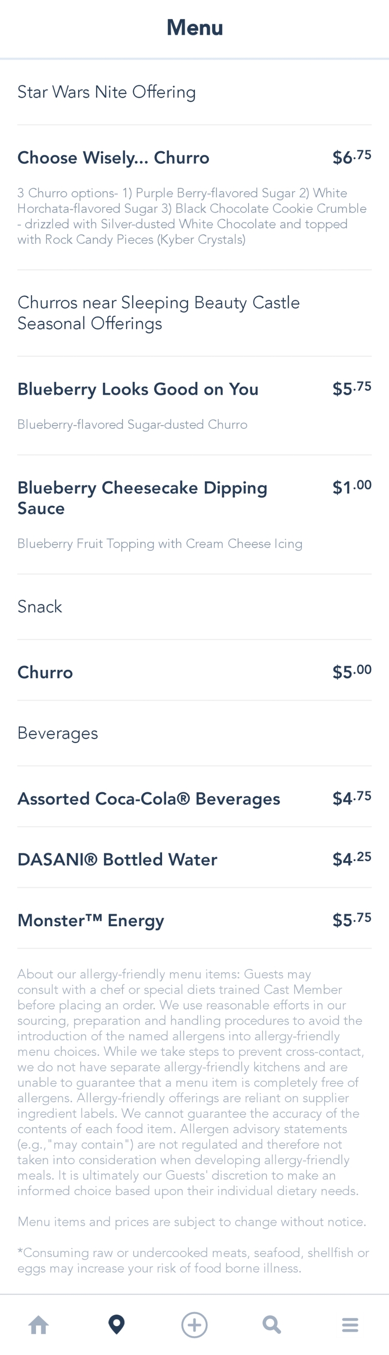 Churros near Sleeping Beauty Castle Snack Menu - Star Wars Nites 2022