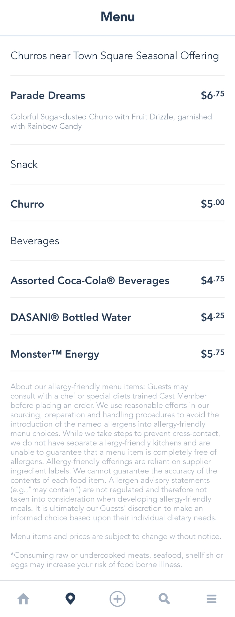 Churros near Town Square Snack Menu - May 2022