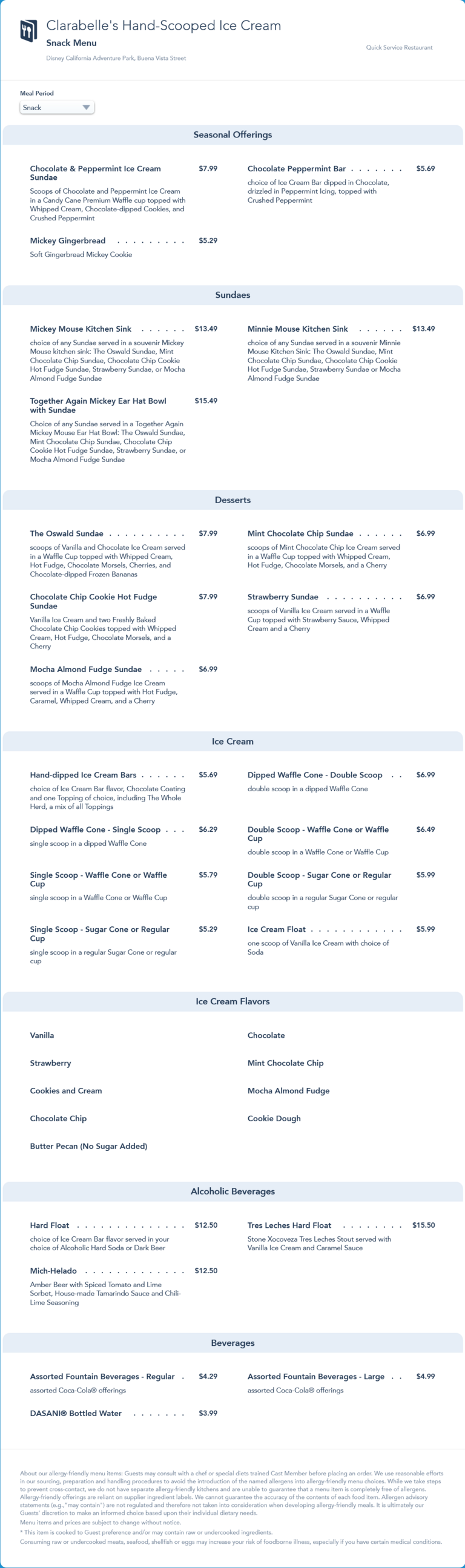 This menu was replaced by an updated snack menu in May 2022 that removed the Christmas seasonal items and added the spring seasonal Mangonada and Sandiananda.