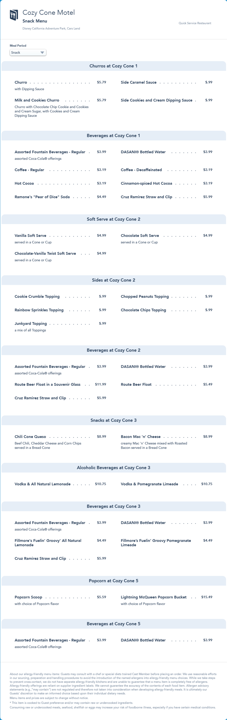 The September 2021 menu and includes the first offerings from Cozy Cone 4 since reopening.
