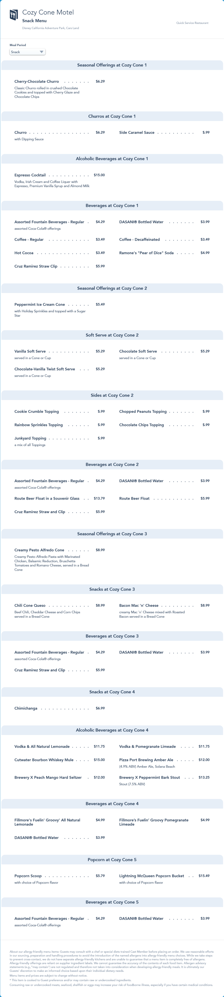 Cozy Cone Motel Snack Menu - November 2021 (archived)