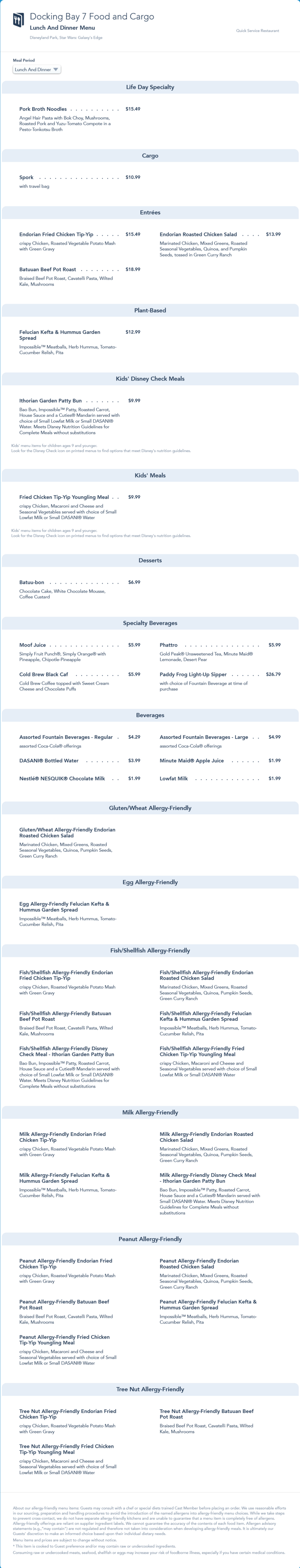 Docking Bay 7 Food and Cargo Lunch/Dinner Menu - Life Day 2021 (archived)