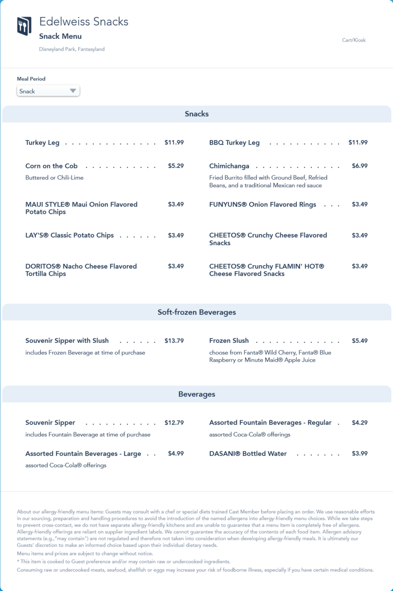 Edelweiss Snacks Snack Menu - July 2022