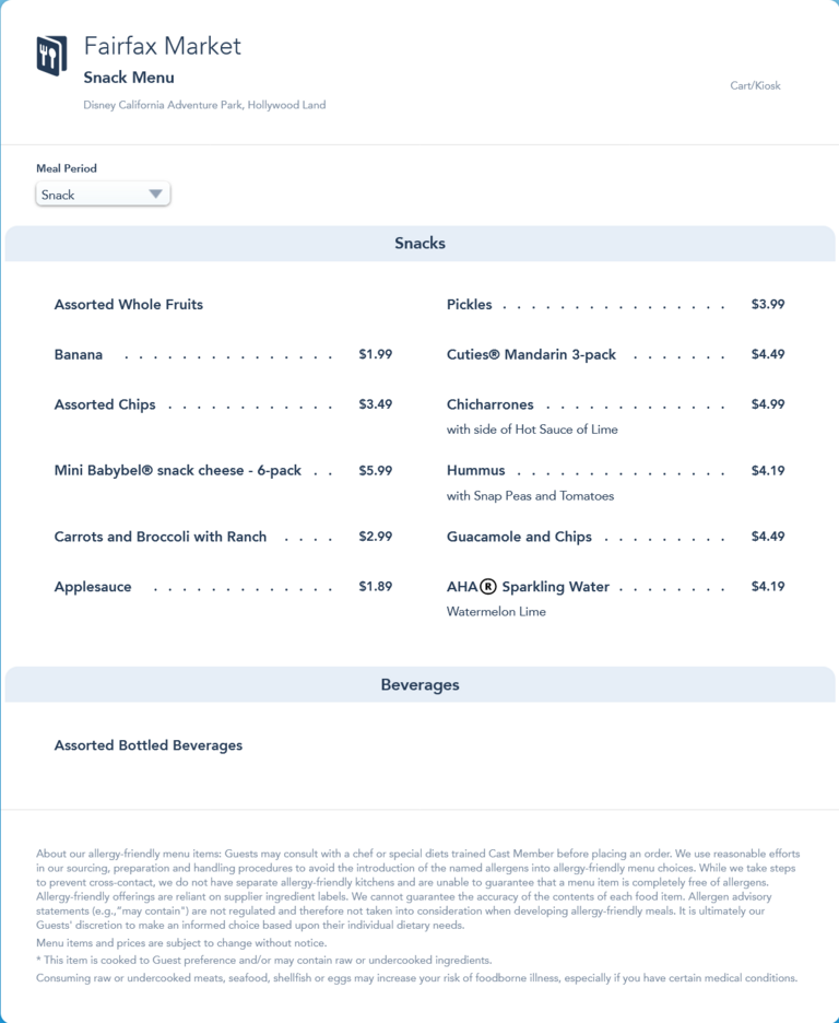 Fairfax Market Snack Menu - July 2022
