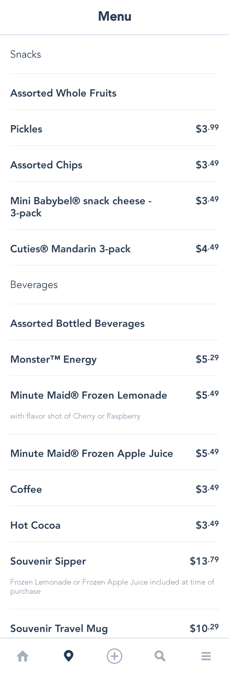 Fantasyland Fruit Cart Snack Menu - September 2021