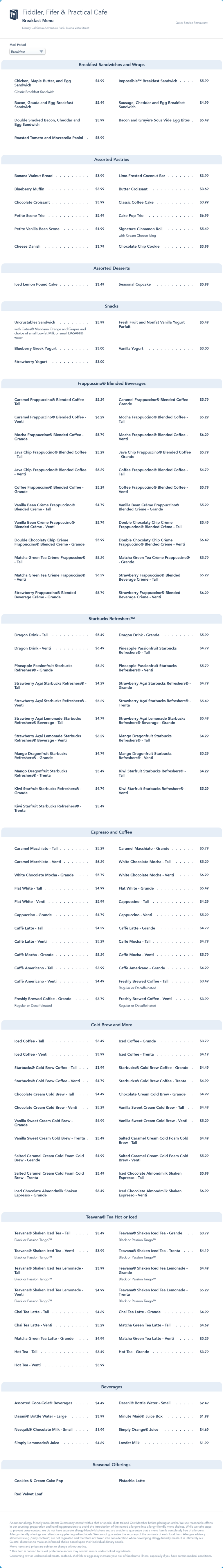 Fiddler, Fifer and Practical Cafe Breakfast Menu - July 2022