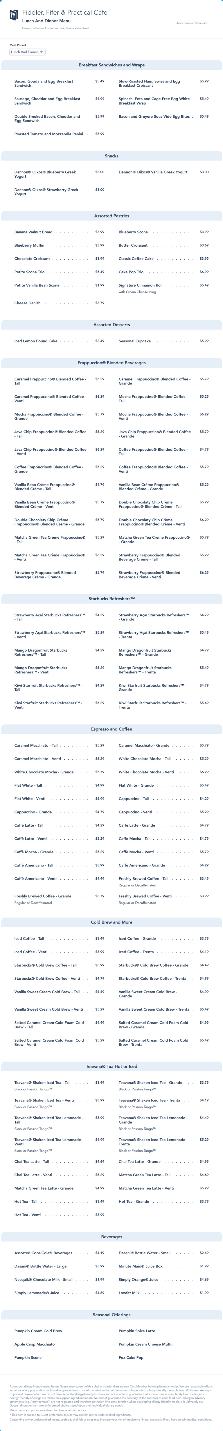 This menu was replaced by an update lunch/dinner menu in November 2021 that included the Christmas seasonal items.