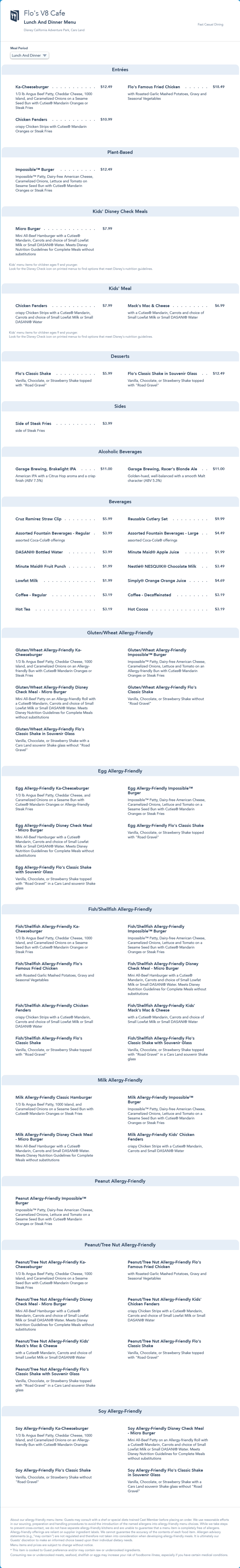 Flo's V8 Cafe Lunch/Dinner Menu - July 2021 (archived)