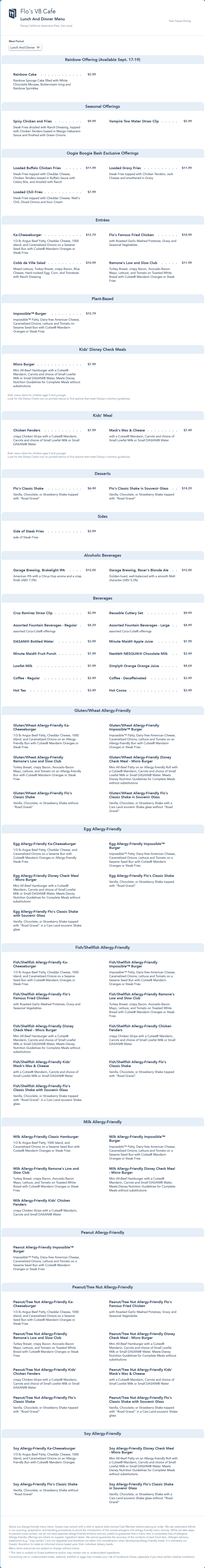 Flo's V8 Cafe Lunch/Dinner Menu - Oogie Boogie Bash 2021