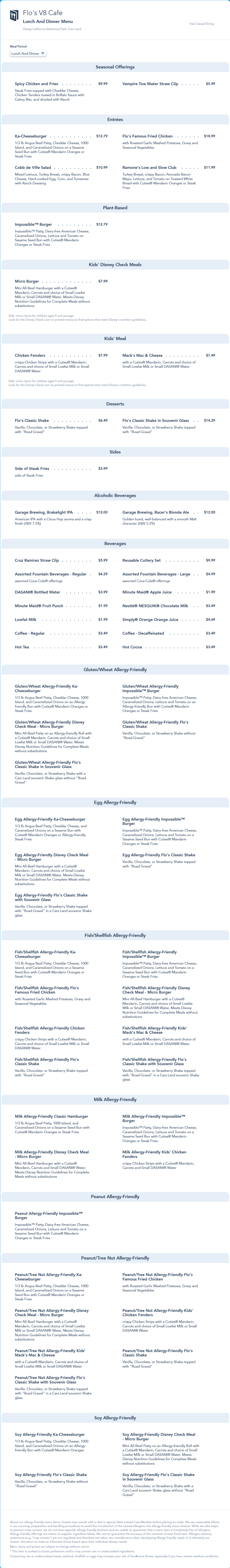 Flo's V8 Cafe Lunch/Dinner Menu - September 2021 (archived)
