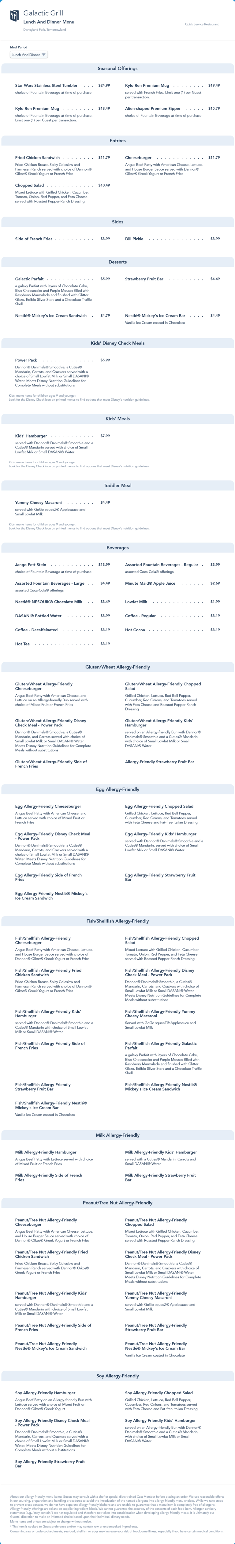 Galactic Grill reopening menu from April, 30th, 2021. This menu was replaced by an