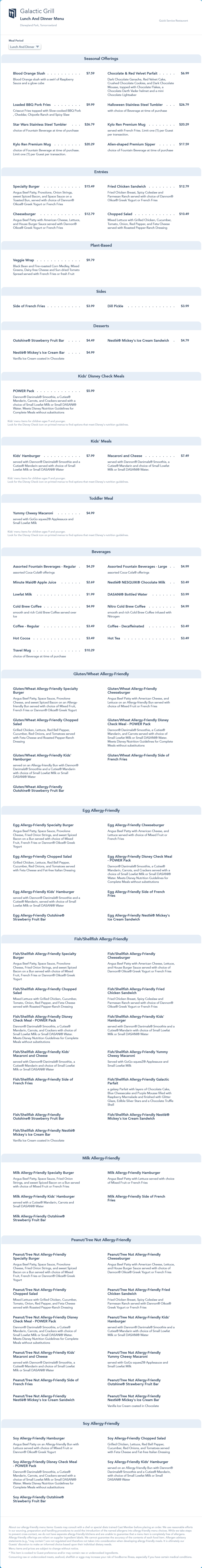 updated lunch/dinner menu in November 2021 that replaced the Halloween seasonal items with Christmas seasonal offerings. The updated menu also includes the