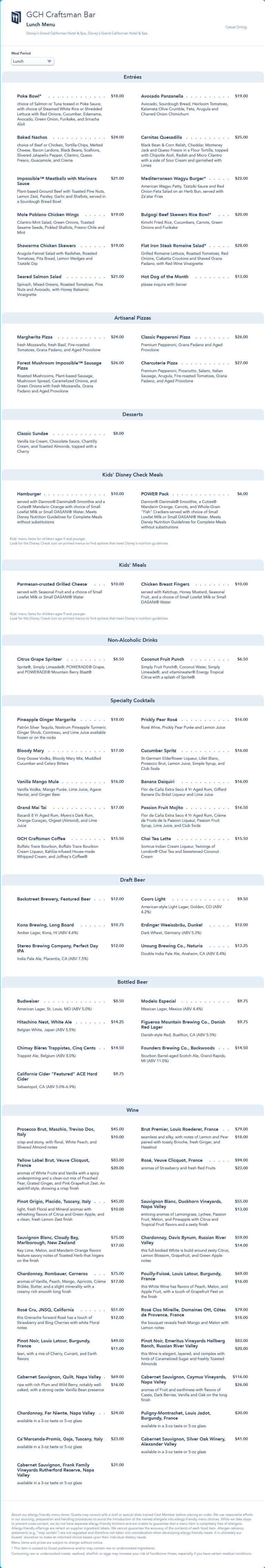 GCH Craftsman Bar Lunch Menu - May 2022