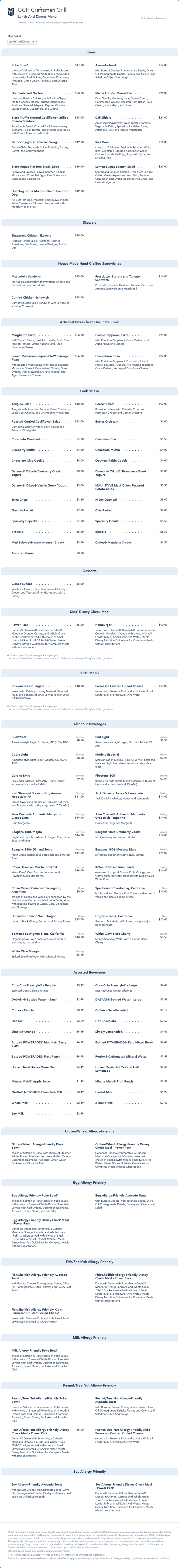 GCH Craftsman Grill Lunch/Dinner Menu - July 2021