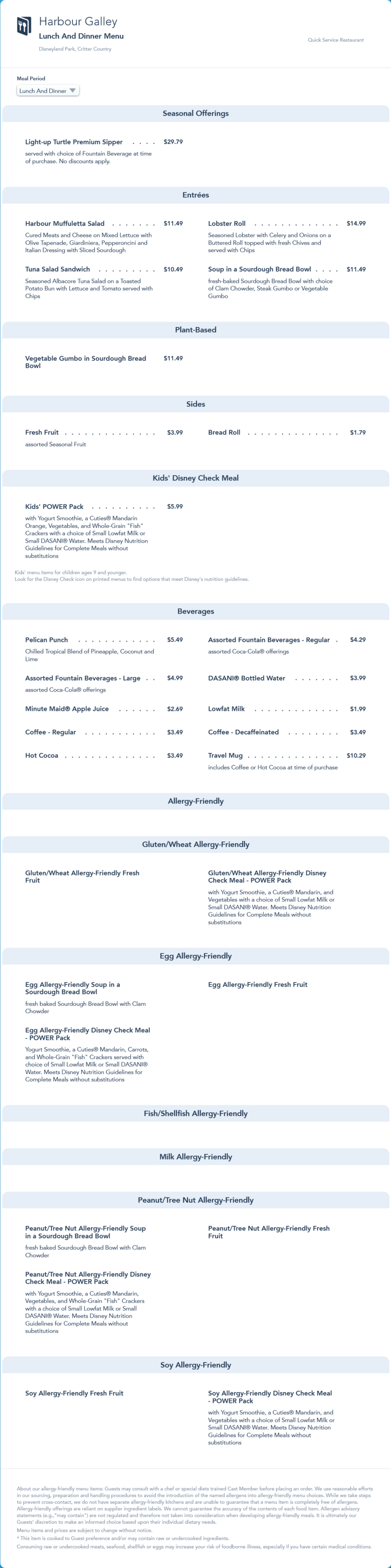 Harbour Galley Lunch/Dinner Menu - July 2022