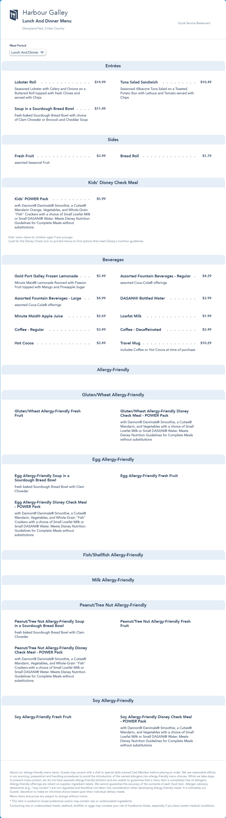 Harbour Galley Lunch/Dinner Menu - May 2022