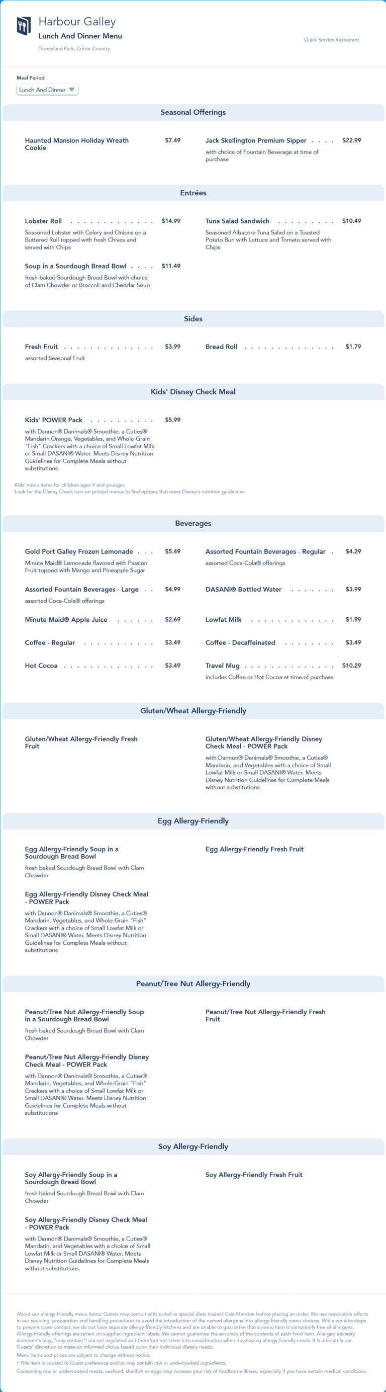 The updated menu also includes the Disney Merriest Nites event-exclusive Lentil Chili in a Sourdough Bread Bowl.