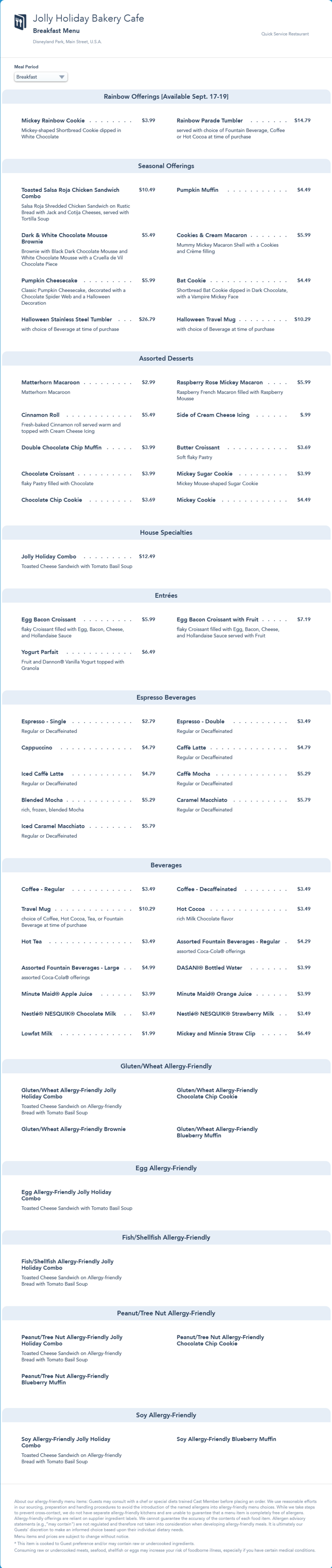 Jolly Holiday Bakery Cafe Breakfast Menu - Gay Days 2021