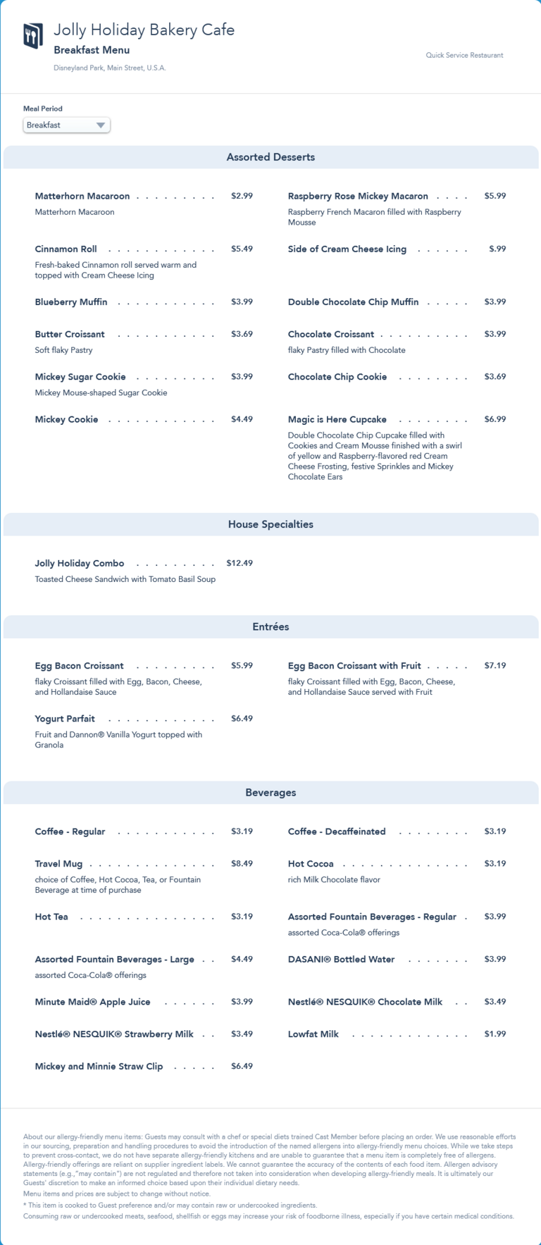 The Jolly Holiday Bakery Cafe initially reopened with only a lunch/dinner menu. The breakfast menu returned in July, 2021.