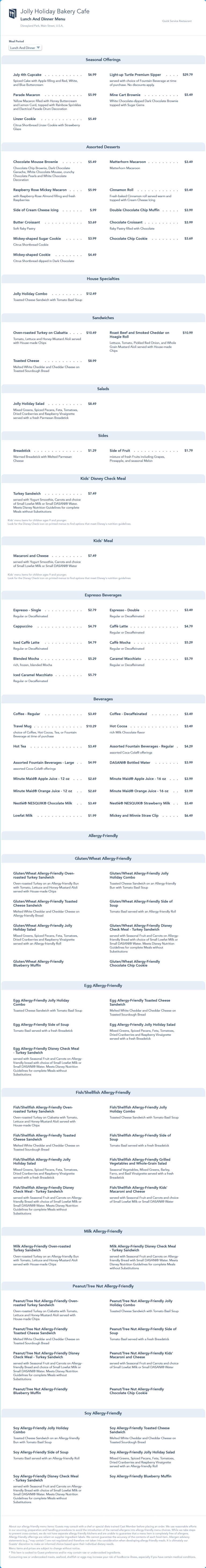 Jolly Holiday Bakery Cafe Lunch/Dinner Menu - July 2022