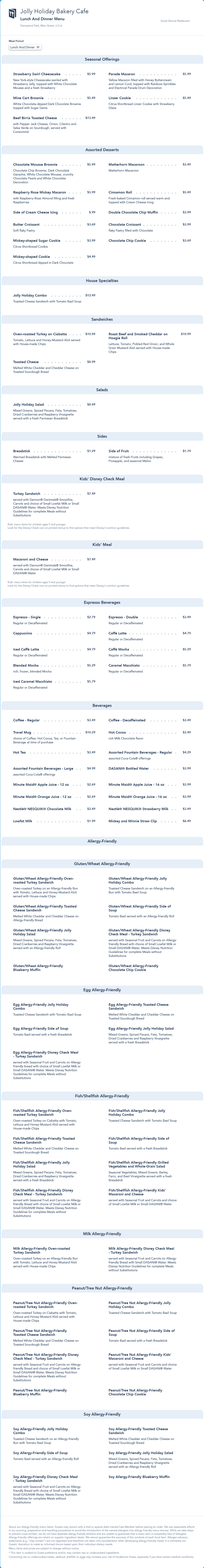 Jolly Holiday Bakery Cafe Lunch/Dinner Menu - May 2022 (archived)