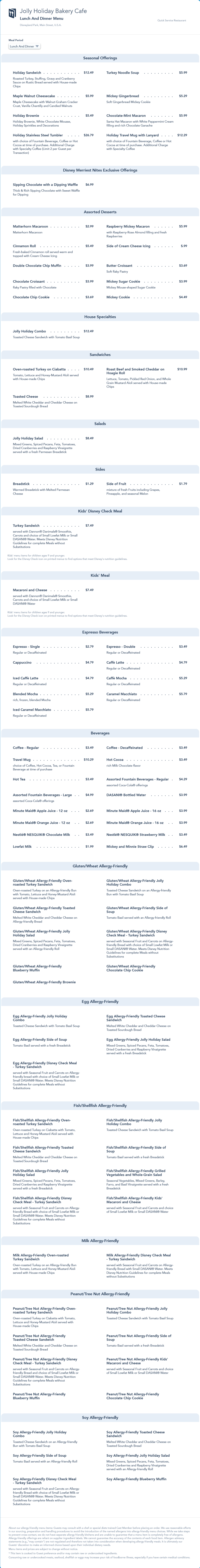 Jolly Holiday Bakery Cafe Lunch/Dinner Menu - November 2021