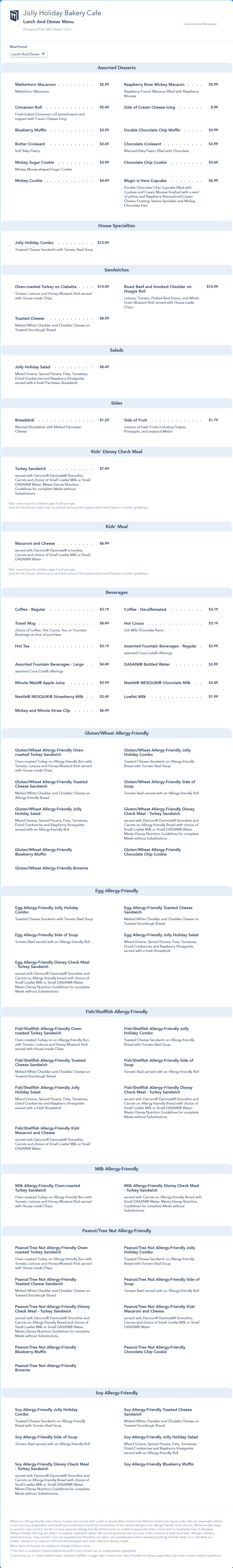 Jolly Holiday Bakery Cafe Lunch/Dinner Menu - April 2021