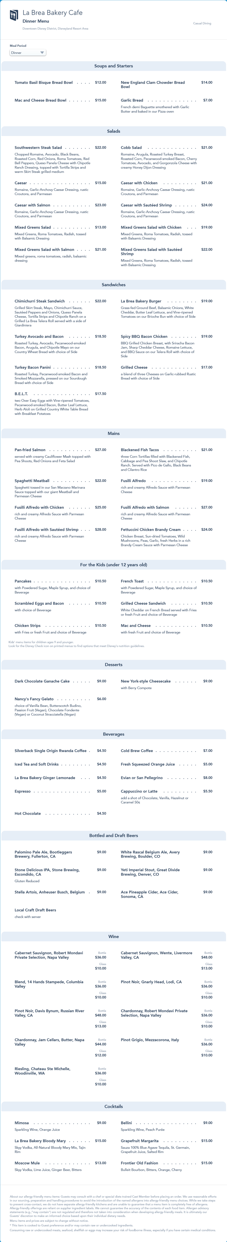 La Brea Bakery Cafe Dinner Menu - July 2021 (archived)