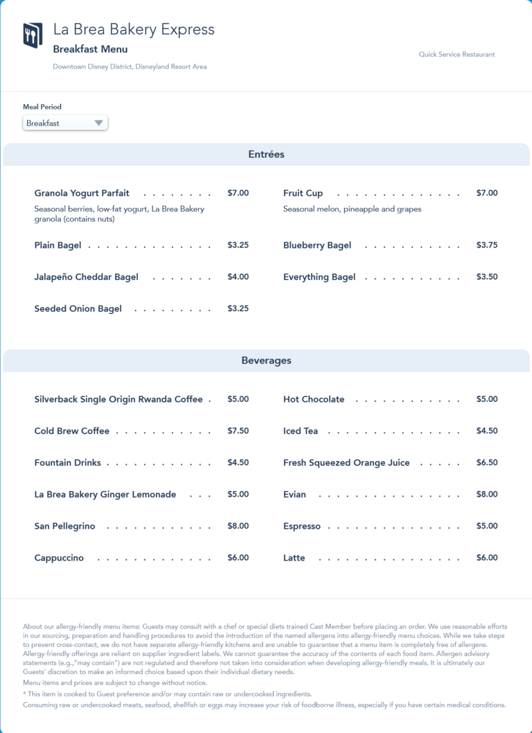 La Brea Bakery Express Breakfast Menu - January 2022