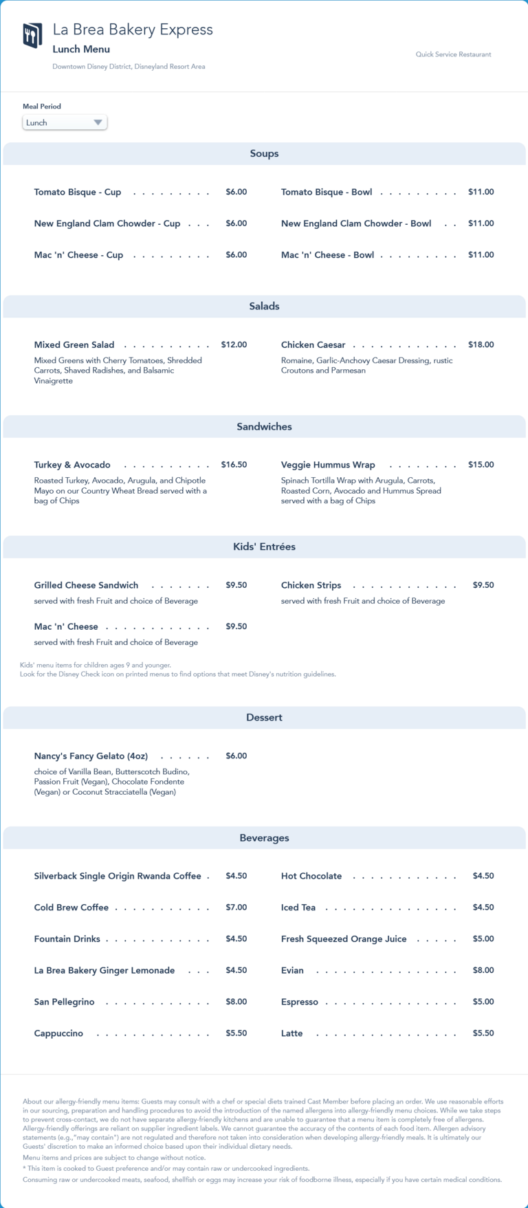 La Brea Bakery Express Lunch Menu - July 2021 (archived)