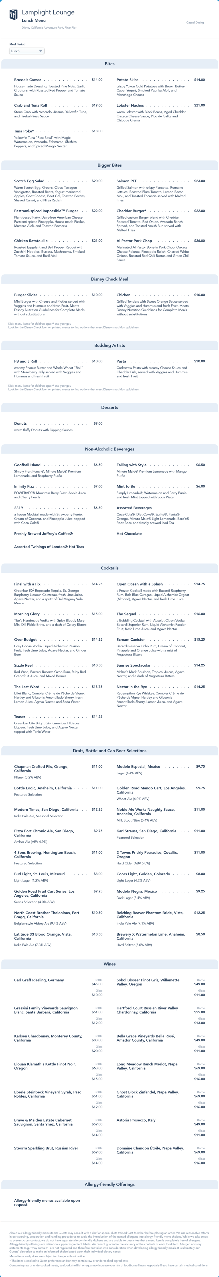 This menu was replaced by an updated lunch menu in September 2021 that added the Halloween seasonal Specialty Cocktail.