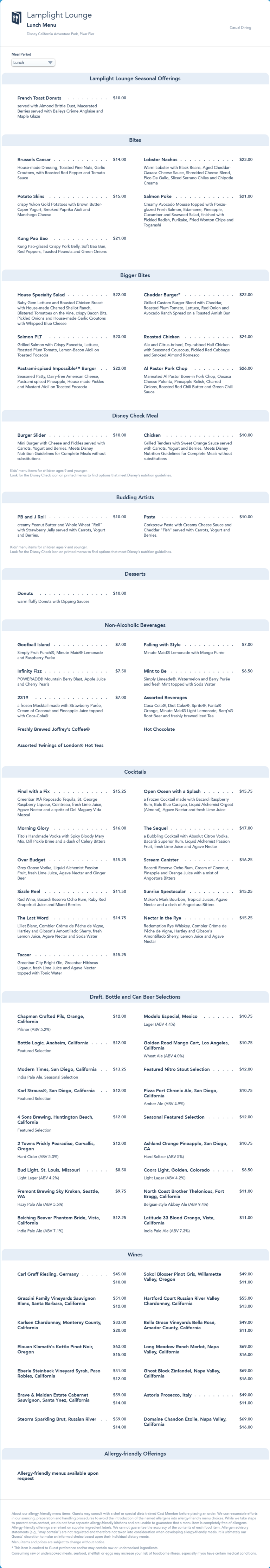 Lamplight Lounge Lunch Menu - May 2022