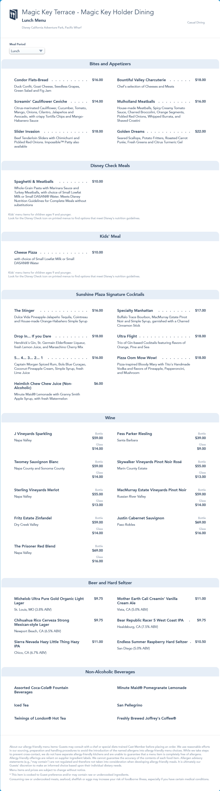updated lunch menu in May 2022 that added the seasonal Golden State Pork Loin and Avalon Cooler offerings. It also added the Athletic Brewing, Run Wild Non-Alcoholic IPA.