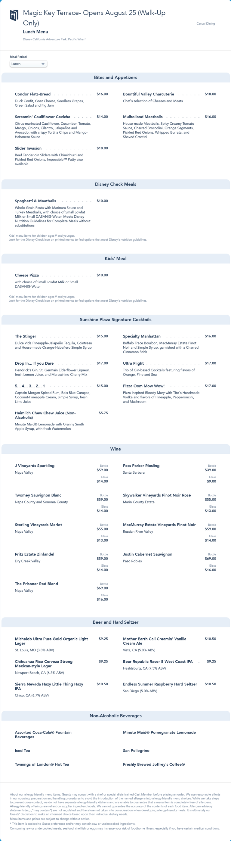 Initial menu from August 25th, 2021 with the new Magic Key Terrace name. No menu items changed from the previous Alfresco Tasting Terrance Menu, just the name.