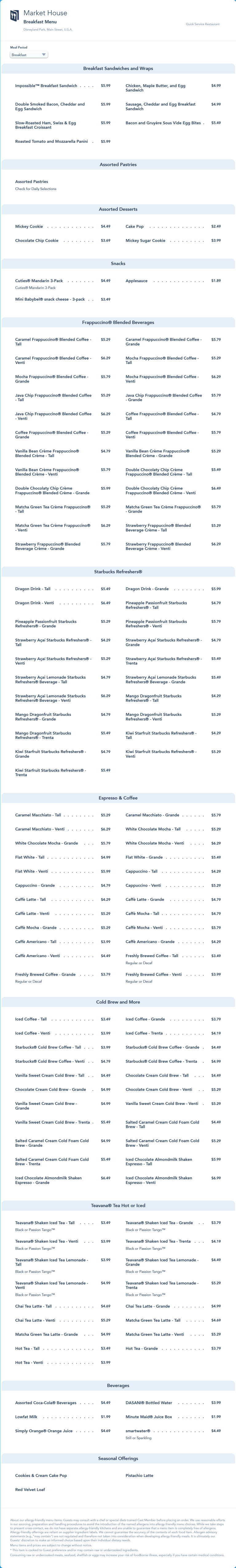 Market House Breakfast Menu - July 2022