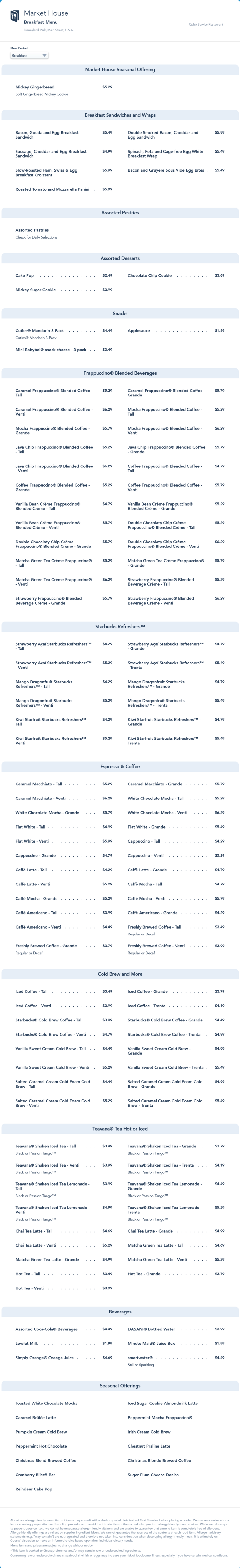 This breakfast menu contains the holiday seasonal offerings from November, 2021. This menu was replaced by an