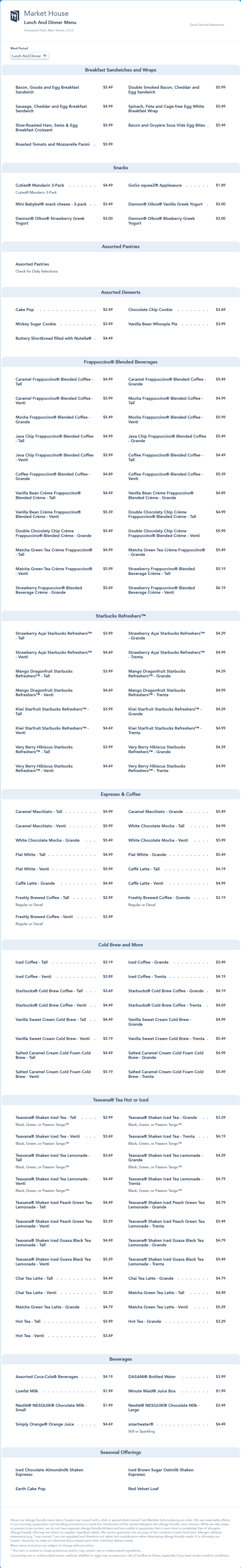 updated lunch/dinner menu