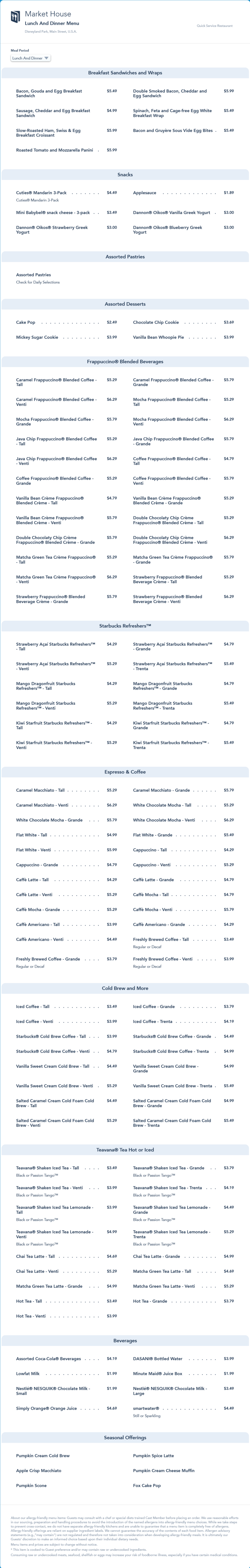 updated lunch/dinner menu